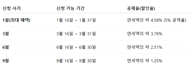 특히 1월 연납은 최대 할인 혜택을 받을 수 있으므로 적극적으로 활용하는 것이 좋습니다.